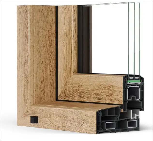 качественное ламинирование. Цветное покрытие наносится на все открытые детали профиля, что позволяет достичь